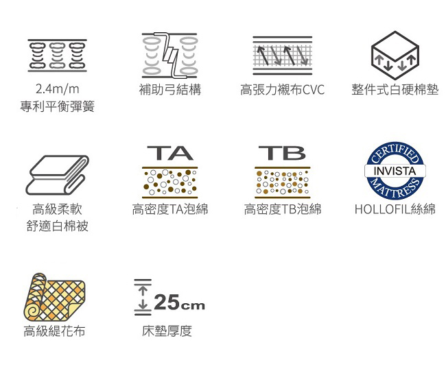床沿加強固定結構確保睡眠時床緣不易下陷,整體支撐力更均勻、耐用度更佳