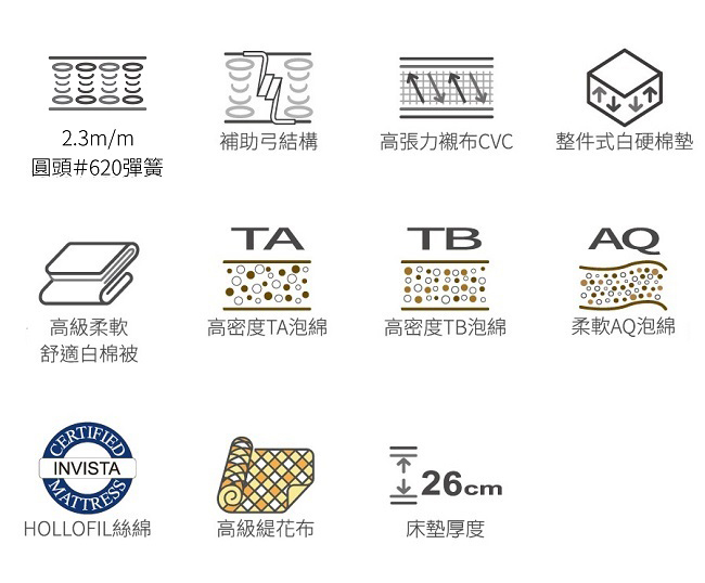床墊高度適中 方便上下床,床沿皆有補助弓做結構加強不需擔心床邊變形,更能提升床墊耐用度。