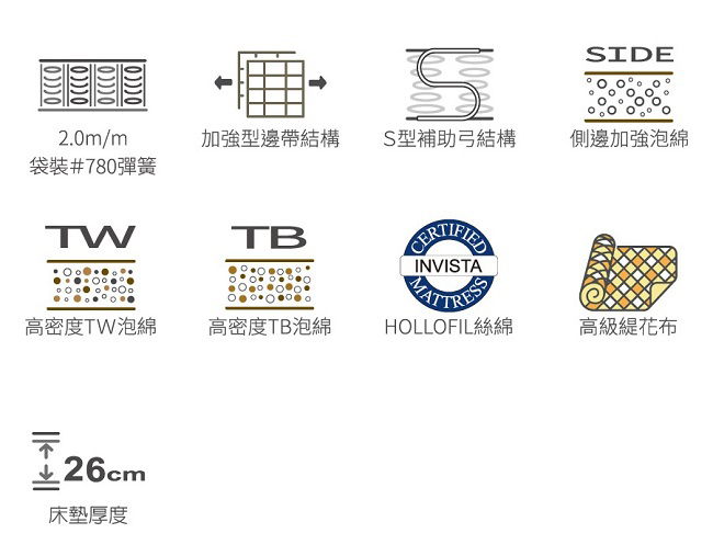 本系列為 KING'S SPRING 之經典床墊,每一個彈簧各別獨立,依人體各部位重量獨立支撐,承受力均衡。外觀採用高級緹花布,床墊軟硬適中,讓您享受舒適好眠提升睡眠品質。